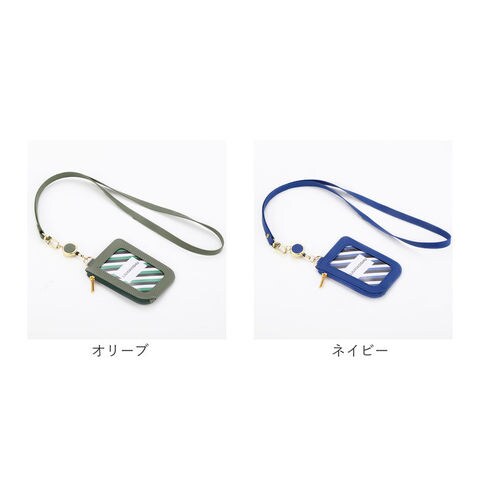 定期入れ パスケース リール付き ysca5319【ネイビー】【ロングタイプ】