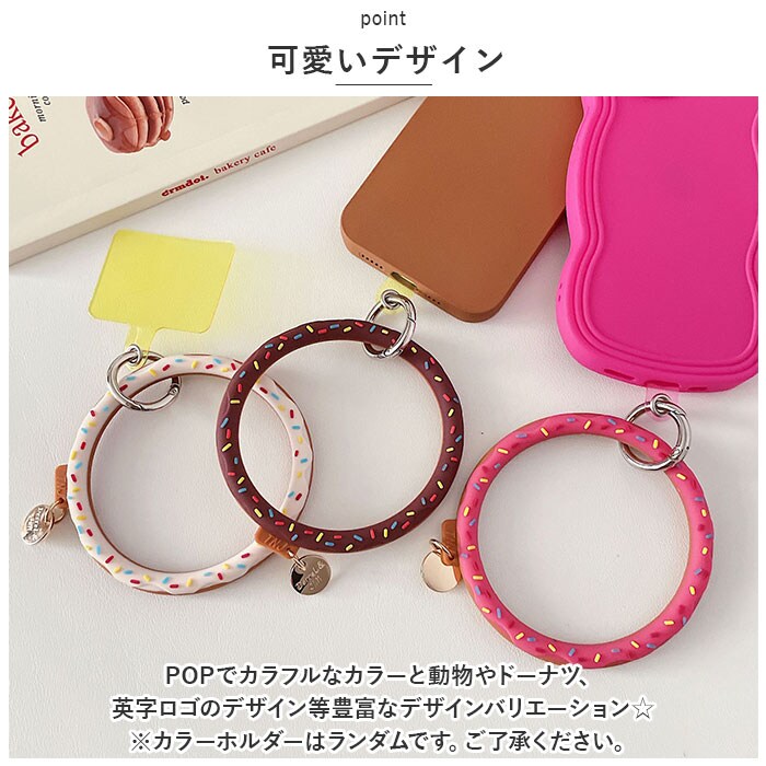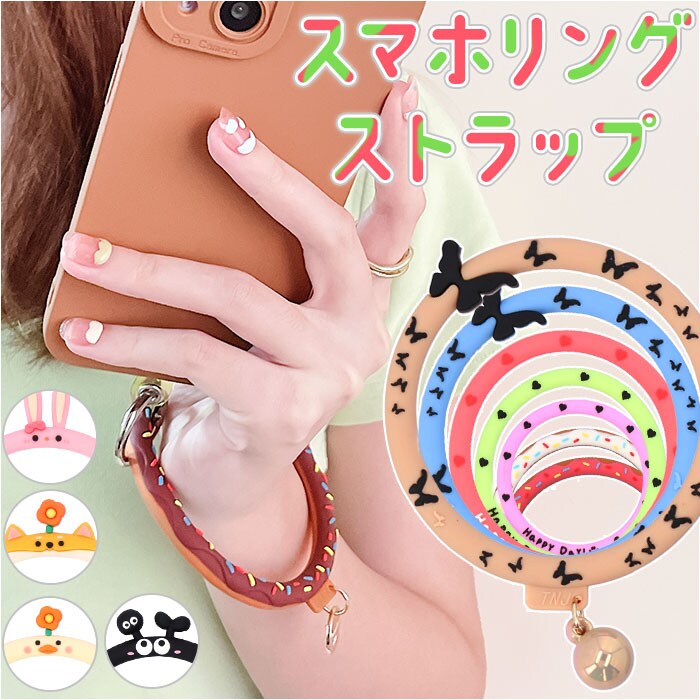 | 商品説明 | スマホ操作時の落下防止や持ち運びに役立つシリコンストラップホルダーが登場!【便利に使えるリング】腕に通せるリングでスマホの落下対策はもちろん、手提げのように持ち運べるのもポイント。【シリコン製】ぷにぷにと柔らかい素材で作られたアイテム。手首や腕が痛くなりにくい仕上がり。【簡単着脱】スマホケースの充電ホールにストラップを差し込むだけで装着完了。(※ケースの形状によってはご使用できないこともあります。)使いたい時にすぐに使えるのが魅力的☆【可愛いデザイン】POPでカラフルなカラーと動物やドーナツ、英字ロゴのデザイン等豊富なデザインバリエーション☆ |