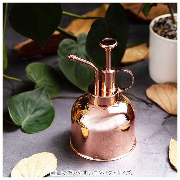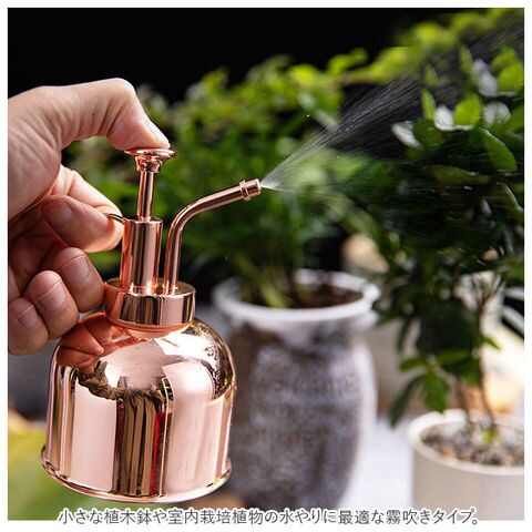 | 商品説明 | 毎日の植物のお手入れがもっと楽しくなる♪おしゃれな「霧吹き式じょうろ」。小さな植木鉢や室内栽培植物の水やりに最適な霧吹きタイプ。サビに強いステンレス素材を採用。軽量で扱いやすいコンパクトサイズ。スタイリッシュなデザインだから、置いておくだけでおしゃれなインテリアに♪ |