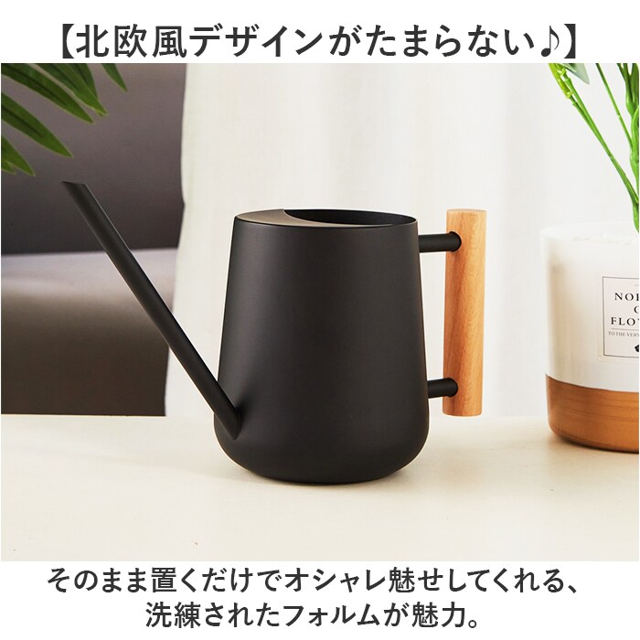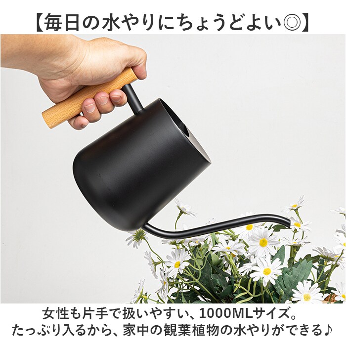 北欧 室内室外両用 じょうろ 1000ML【ブラック】