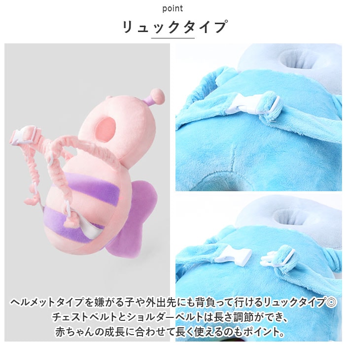| 商品説明 | アニマルデザインが可愛い♪赤ちゃんの頭部をやさしく守る、ヘッドガードが新登場。【転倒対策】思わず転んでごっつんこ!そんな赤ちゃんの転倒に備えて、しっかりと弾力性のある素材を採用。伝い歩き、よちよち歩きを始めた赤ちゃんやハイハイがまだ不安定な赤ちゃんも安心◎【リュックタイプ】ヘルメットタイプを嫌がる子や外出先にも背負って行けるリュックタイプ◎チェストベルトとショルダーベルトは長さ調節ができ、赤ちゃんの成長に合わせて長く使えるのもポイント。【ゴム仕様】ショルダーベルトはゴム仕様になっており、赤ちゃんの体にしっかりフィット。【軽量】長時間着用していても赤ちゃんが疲れない軽量設計◎【贈り物にも】愛らしいデザインのアイテムで赤ちゃんやママさんもきっと喜ぶアイテム♪プチギフトにもおススメ♪ |