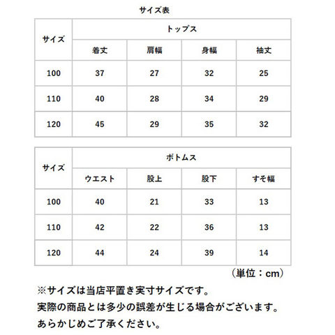 | サイズ | [キッズ] ・100cm ・110cm ・120cm ※サイズについて詳細は、商品画像の中にあるサイズ表をご覧くださいませ。 |
