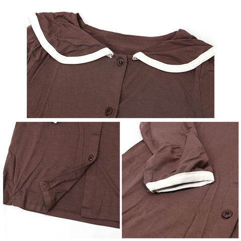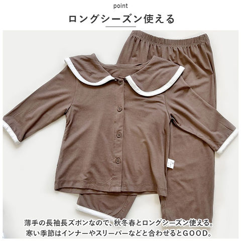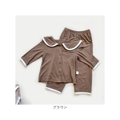 キッズ パジャマ 長袖 ルームウェア 襟付き yskf5733【ブラウン】【100cm】