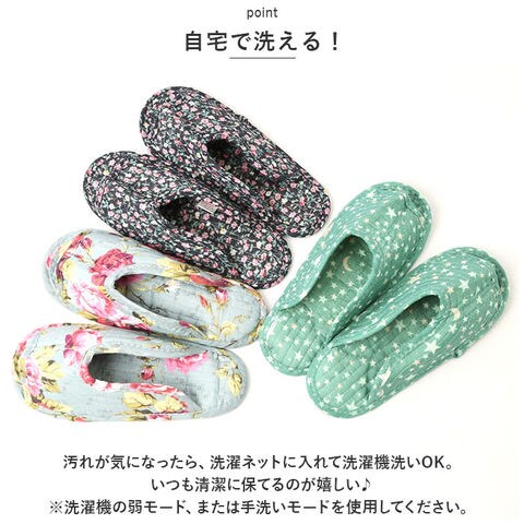 | 商品説明 | お家でも出先でも大活躍!お手入れラクチンな、洗えるスリッパ2足セット。【靴下感覚で履けるスリッパ】薄手のキルト生地を使い、驚くほど軽量な仕上がり!素足でも馴染みやすく、心地よくフィット◎【自宅で洗える!】汚れが気になったら、洗濯ネットに入れて洗濯機洗いOK。いつも清潔に保てるのが嬉しい♪(※洗濯機の弱モード、または手洗いモードを使用してください。)【滑り止め付き】底面には小さなシリコンドットの滑り止め付き。フローリングなどを傷つけることなく、転倒などからガード。【スリムに持ち運び】アッパー部分を折りたためばスリムになるので、バッグにサッと忍ばせて持ち歩ける!学校行事や旅行、ジムや温泉施設でも重宝。【気分も晴れやかに】温かみのあるカラフルなデザインをラインナップ!足元をパッと明るく演出する2足セット。 |