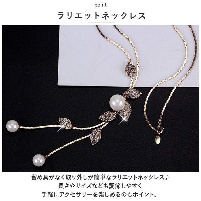 | 商品説明 | 大人カワイイデザインが魅力!ラリエットネックレスが新発売!【ラリエットネックレス】留め具がなく取り外しが簡単なラリエットネックレス♪長さやサイズなども調節しやすく手軽にアクセサリーを楽しめるのもポイント。【様々なコーデに対応】ロングネックレスだから襟が高いトップスや襟が大きいセラーカラー等のトップスに合わせやすいのも魅力。【着?せにも】ロングネックレスの縦長効果で着?せアイテムとしても活躍!小顔魅せもアリ☆【マルチに活躍】カジュアル過ぎず上品なカラーとデザイン!デイリー使いはもちろんオフィスやフォーマルにもピッタリなアイテム。 |