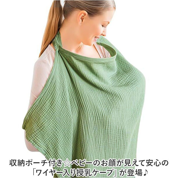 授乳ケープ ワイヤー入り 収納袋付き ysma5539【グリーングレー】