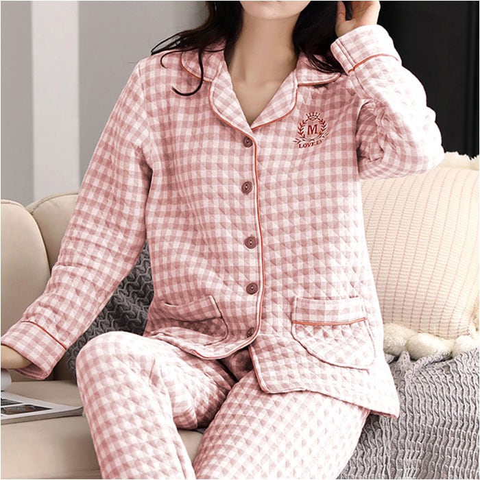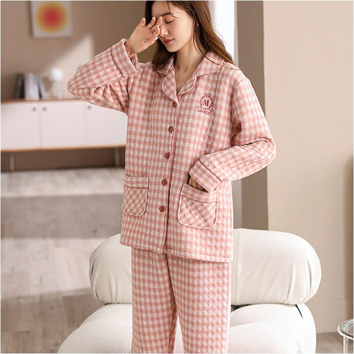 キルトニットパジャマ 上下セット コットン 秋冬 yspaj5310【C×ピンク】【M】