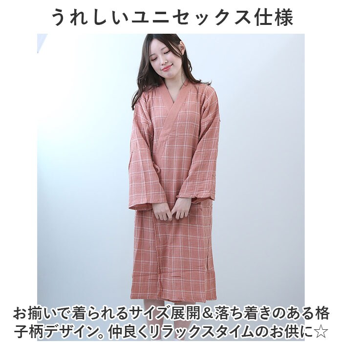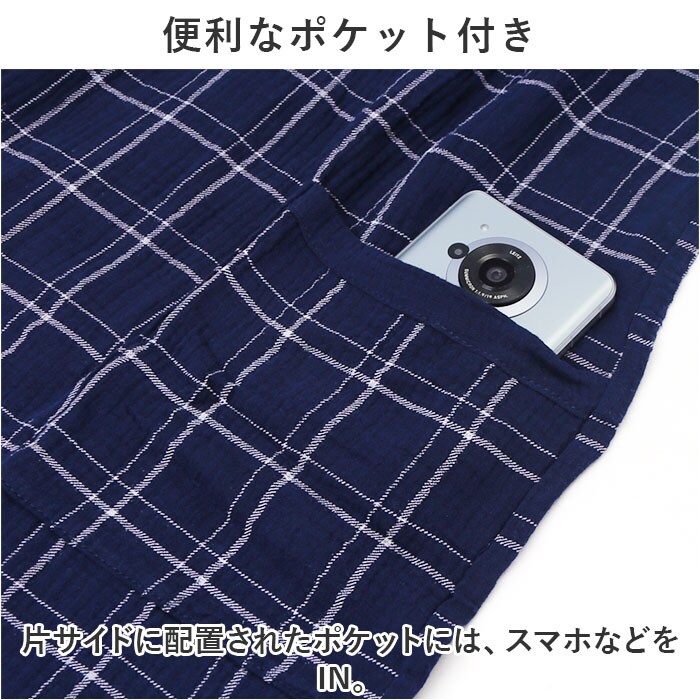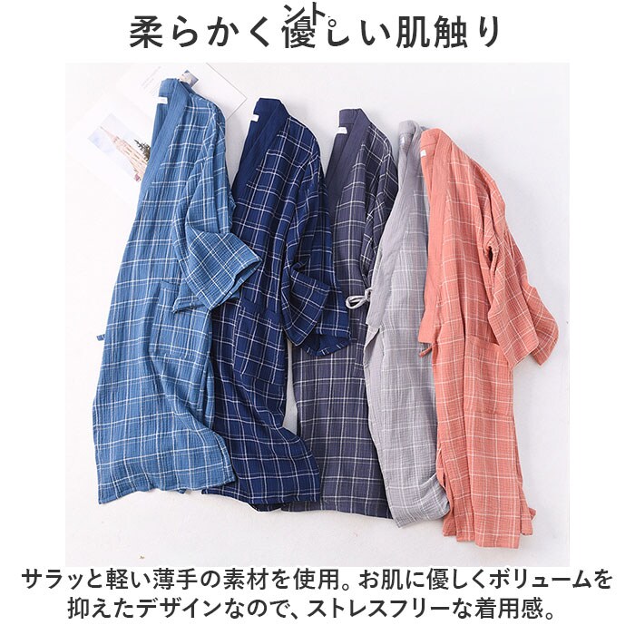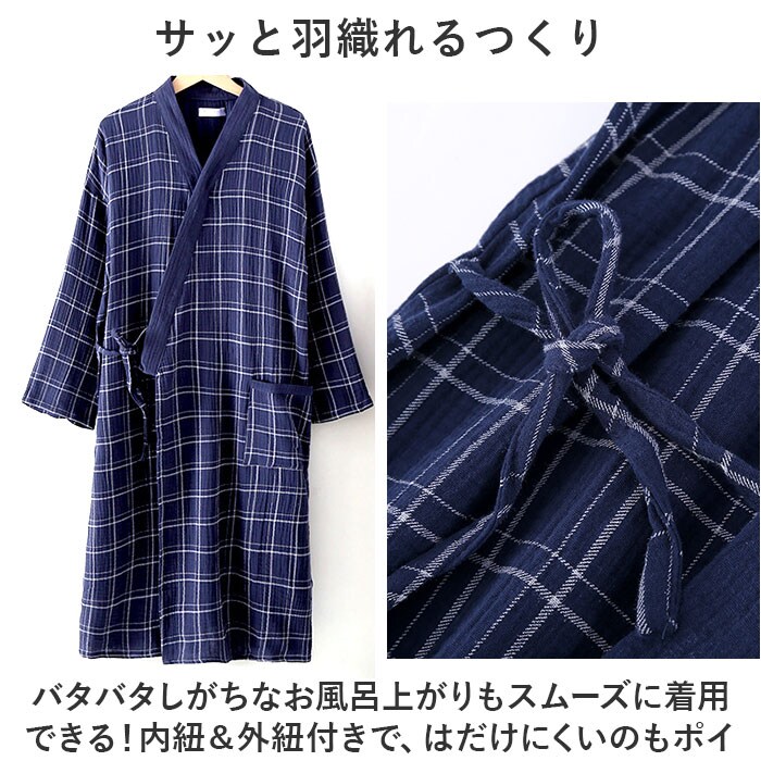 | 商品説明 | お風呂上りを快適に♪使い勝手抜群のバスローブが新登場。【サッと羽織れるつくり】バタバタしがちなお風呂上がりもスムーズに着用できる!内紐&外紐付きで、はだけにくいのもポイント。【柔らかく優しい肌触り】サラッと軽い薄手の素材を使用。お肌に優しくボリュームを抑えたデザインなので、ストレスフリーな着用感。【オールシーズン活躍】夏は涼しく冬はあたたかいコットン生地。お風呂上がりもムレにくく、シーズン問わず快適。【便利なポケット付き】片サイドに配置されたポケットには、スマホなどをIN。【うれしいユニセックス仕様】お揃いで着られるサイズ展開&落ち着きのある格子柄デザイン。仲良くリラックスタイムのお供に☆ |