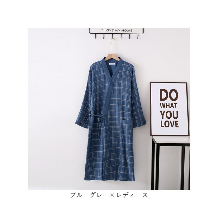 バスローブ ガーゼコットン 長袖 春夏秋冬 ysrw5368【ブルーグレー×レディース】【L】