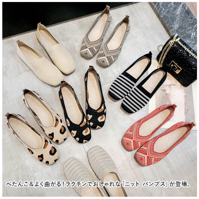 | 商品説明 | ぺたんこ&よく曲がる!ラクチンでおしゃれな「ニット パンプス」が登場。【ラクチンでおしゃれ】ぺたんこでラクチンな履き心地とおしゃれさを両立したアイテム。カジュアルにもほど良いきっちりスタイルにも合う万能パンプス。【らくちんな履き心地】ニット素材を採用。脚にフィットするので履き心地も良く、通気性にも優れ靴内を快適に◎【歩きやすい】歩きやすさの秘密は1センチのヒール!かかととつま先の1センチの高低差がちょうど良く、自然と踏み出しやすいので歩きやすい。【屈曲性◎】足の動きに合わせて良く曲がる、屈曲性に優れたソール部分。フィット感が気持ちよい。【選べるデザイン】デザインの種類が豊富。シンプルデザインから柄物までオシャレなものが勢揃い♪お好みのデザインをチョイス。 |