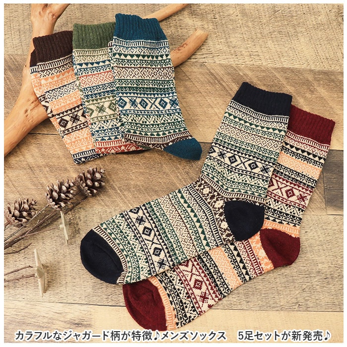 靴下 メンズ 暖かい 5本セット ysso5323p5【マルチカラー】