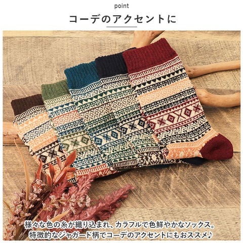 | 商品説明 | カラフルなジャガード柄が特徴♪メンズソックス 5足セットが新発売♪【コーデのアクセントに】様々な色の糸が織り込まれ、カラフルで色鮮やかなソックス。特徴的なジャガード柄でコーデのアクセントにもおススメ♪【靴下見せコーデにも】短めのボトムスと合わせ、靴下見せコーデにしてスタイルにトレンド感をプラス。【5足セット】お買い得な5足セット!洗い替えにも便利!【履き心地◎】肌触りが良く伸縮性もあり、足に優しくフィットするので履き心地◎チクチク感がない素材なのも嬉しいポイント。 |