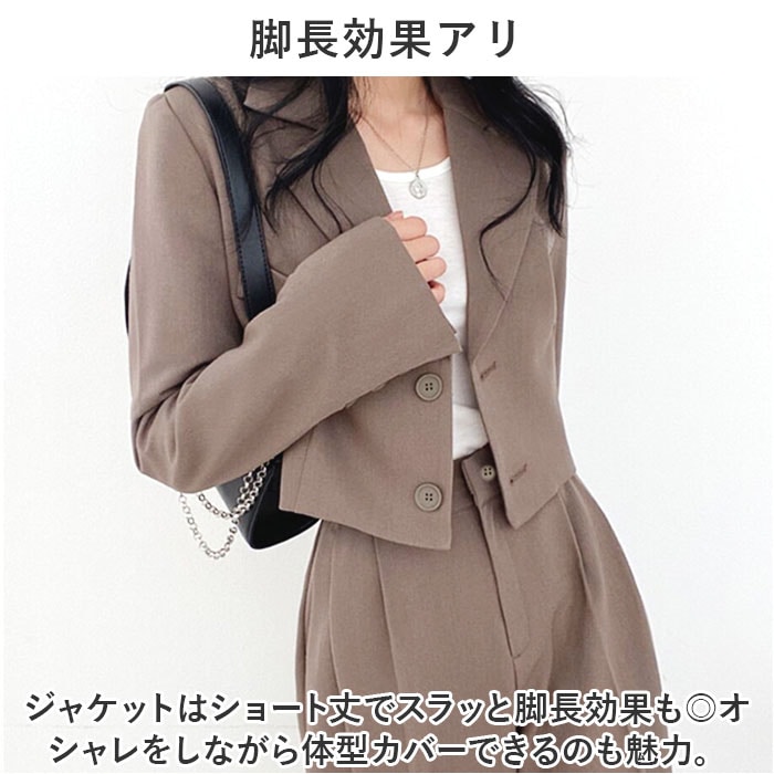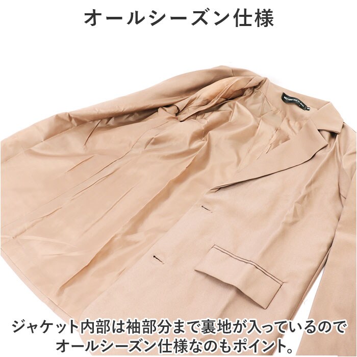 | 商品説明 | 普段使いからビジネス用に!着回し力抜群なレディーススーツが発売♪【シンプルで着回し力アリ!】シンプルだからこそ、様々なシーンで着こなせる!カジュアルはもちろん、ベーシックなカラーバリエーションと装飾が少ない作りでビジネスにも活躍。【動きやすいパンツスタイル】ボトムスはパンツスタイルだから動きやすい!外回りが多いビジネスウーマンにもおススメ。【シルエットがキマル】パンツのタックと、大きすぎない肩パッド入でシルエットがスマートにキマる♪シワになりにくい生地も◎【脚長効果アリ】ジャケットはショート丈でスラッと脚長効果も◎オシャレをしながら体型カバーできるのも魅力。【楽ちんなゴムウエスト】パンツのウエストは後ゴム仕様になっており、キレイめスタイルをキープしながら楽ちんな履き心地に。【オールシーズン仕様】ジャケット内部は袖部分まで裏地が入っているのでオールシーズン仕様なのもポイント。 |