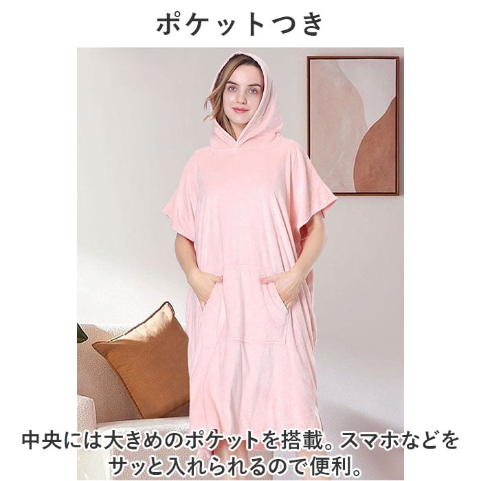| 商品説明 | スポっ被ってポンチョ仕様に☆吸水速乾が嬉しい「お着替えポンチョタオル」が登場。【ポンチョ仕様】スポっと被ればポンチョとして使える。ジムやプールなどの着替えシーンにぴったり!お風呂上りの冷え防止に着用するのもGOOD。【吸水速乾◎】ポリエステルとナイロンを使用した、吸水と速乾に優れた生地を採用。お洗濯もラクラクなので、気軽に使える!【ふんわり素材】ふんわり優しい肌触りの素材。毛羽立ちが少ないので、丈夫で長持ち&使いやすい◎【フードつき】濡れた髪を包み込む、フードつきなのも嬉しいポイント。日よけにもなるので、プールや水遊びでも快適♪【ポケットつき】中央には大きめのポケットを搭載。スマホなどをサッと入れられるので便利。【ユニセックスで使える】大人用サイズなので、ユニセックスで使える!家族で共有したり、色違いでお揃いにするのもオススメ☆【選べるカラー】くすみカラーがおしゃれなカラーバリエーション!お好みのカラーをチョイス♪ |