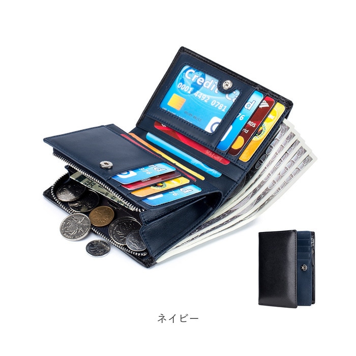 財布 本革 二つ折り コンパクト yswa5332【ネイビー】