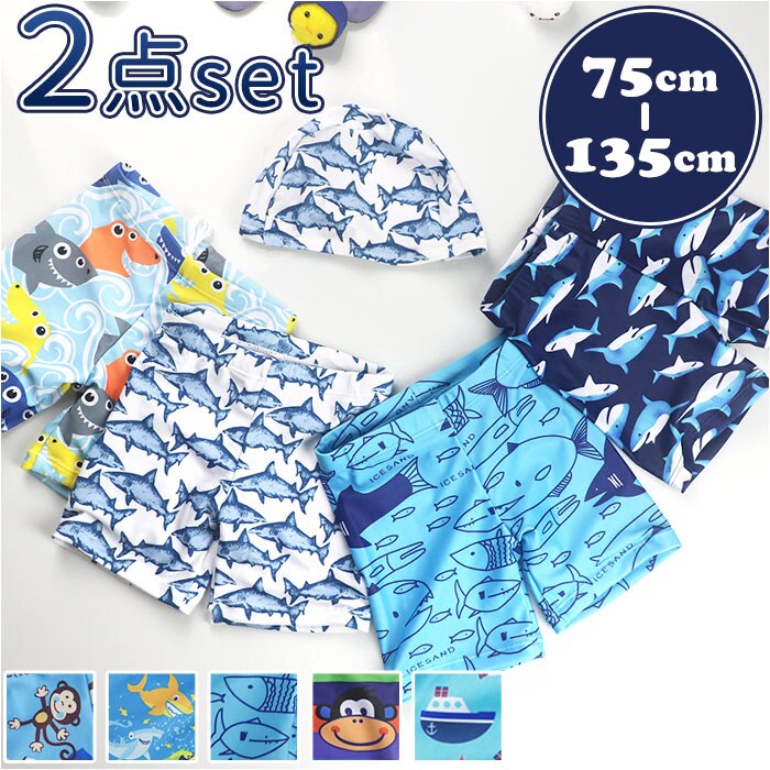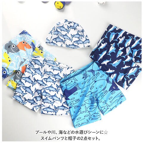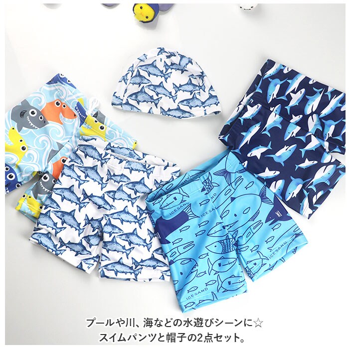 キッズ 男の子 スイムパンツ yswim5058【サメ×ホワイト】【95-105cm】
