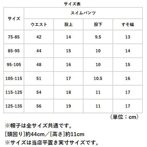 | サイズ | [ボーイズ] ・75-85cm ・85-95cm ・95-105cm ・105-115cm ・115-125cm ・125-135cm ※実際の商品とは多少の誤差が生じる場合がございます。あらかじめご了承ください。 |