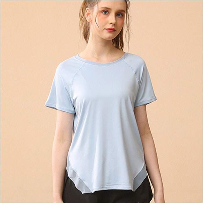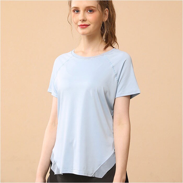 ヨガウェア トップス レディース 半袖 おしゃれ【ライトブルー】【M】