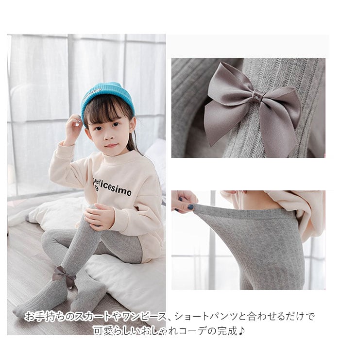| 商品説明 | アンクル部分の大きなリボンはポイント♪キュートなキッズ用タイツが発売。小さなお子さまのお肌に優しい、柔らかな肌触り。伸縮性もあり、程よく体にフィットして履き心地抜群◎お手持ちのスカートやワンピース、ショートパンツと合わせるだけで、可愛らしいおしゃれコーデの完成♪どんな服装にも合わせやすいベーシックカラーをラインナップ!色違いで欲しくなるアイテム。 |