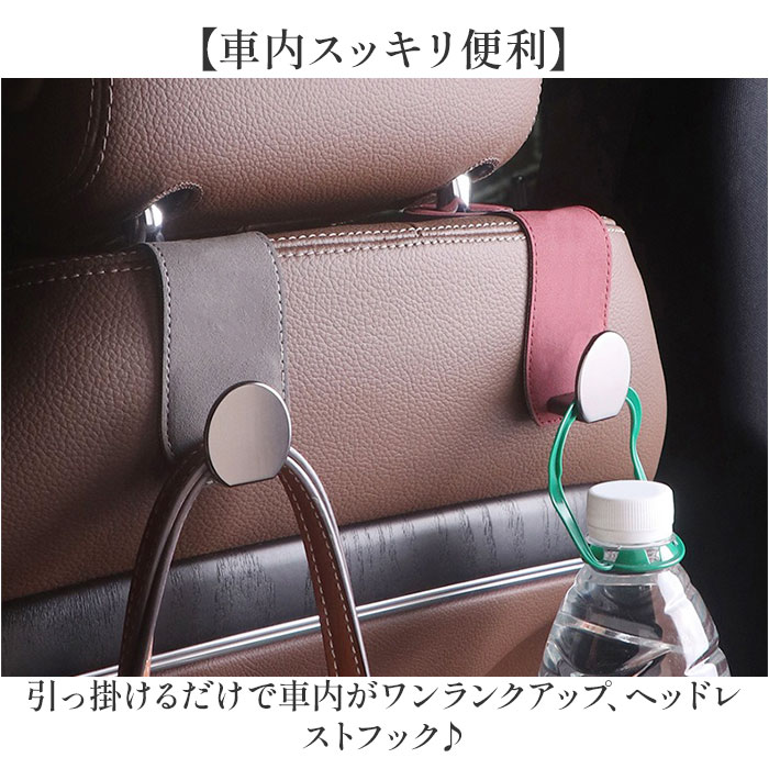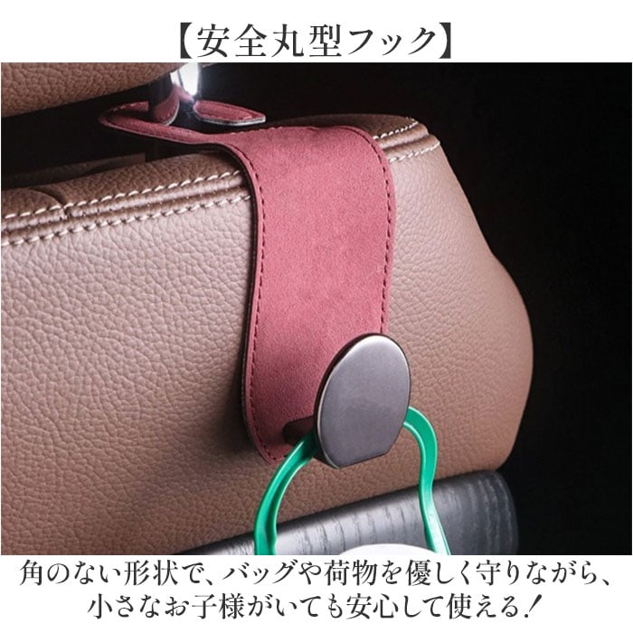 | 商品説明 | 【車内スッキリ便利】引っ掛けるだけで車内がワンランクアップ、ヘッドレストフック♪【シートにぴったりフィット】上部は柔軟で丈夫な金属板を使用しているので、シートに沿って曲げられるから隙間ができずキレイに納まる〇【上質スウェード調】高級感のある素材が車内の雰囲気をグレードアップさせる、こだわりのデザイン性。【安全丸型フック】角のない形状で、バッグや荷物を優しく守りながら、小さなお子様がいても安心して使える!【しっかりとした耐久性】フックには大きめの金属板を使用し強度がアップ。 |