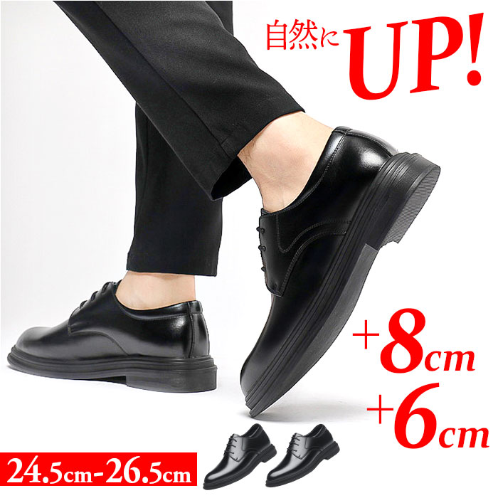 シークレットシューズ ビジネスシューズ 身長アップ【ブラックインヒール8cm】【42(26cm)】