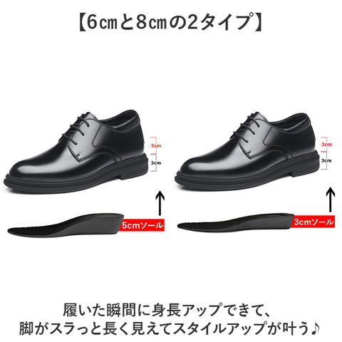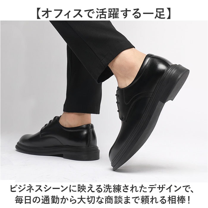 | 商品説明 | 【履くだけで身長UP】こっそり身長アップ、スタイル良く見えるビジネスシューズ。【6cmと8cmの2タイプ】履いた瞬間に身長アップできて、脚がスラっと長く見えてスタイルアップが叶う♪【バレない自然な仕上がり】外見からは底上げが分からないように作られたシークレット設計で、こっそり印象チェンジ◎【上品な合皮デザイン】落ち着きのある合皮素材だから、ビジネスシーンやフォーマルな場でも品よく決まる。【歩きやすさを追求】弾力性と屈曲性の高いソールで、長時間履いても疲れにくく快適な履き心地〇【オフィスで活躍する一足】ビジネスシーンに映える洗練されたデザインで、毎日の通勤から大切な商談まで頼れる相棒! |
