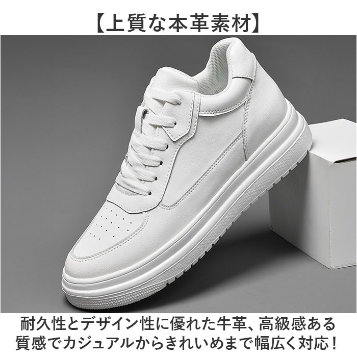 | 商品説明 | 【自然にスタイルアップ】インヒールで即効身長アップの、厚底インヒールスニーカー♪【バレないシークレット】外見からはインヒールだと気づかれない構造、周囲に気づかれず自然なスタイルアップを実現◎【調整できるインヒール】7cmの厚底靴に1cmのインヒールを入れることで高さをアップできる〇【上質な本革素材】耐久性とデザイン性に優れた牛革、高級感ある質感でカジュアルからきれいめまで幅広く対応!【メッシュで通気性抜群】内側はメッシュ素材で快適、長時間履いても蒸れにくく、心地よく過ごせる。【快適な履き心地】足に優しいフィット感とクッション性で、疲れにくく、足への負担も少なくデイリーに活躍。 |