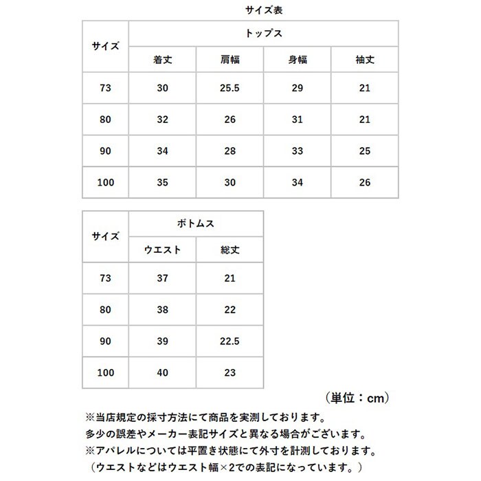| サイズ | [ベビー] ・73cm ・80cm ・90cm ・100cm ※サイズについて詳細は、商品画像の中にあるサイズ表をご覧くださいませ。 |