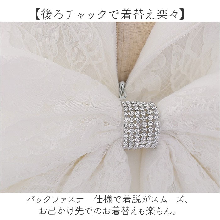 | 商品説明 | 【特別な日を彩る華やかさ】ビッグリボンとふんわりチュールの愛らしいベビードレス。【バックリボンが主役級】後ろ姿まで可愛い大きなリボンが、周りの視線を集める存在感抜群のデザイン♪【ふんわりレースが華やか】立体感のあるチュールレースが軽やかに広がり、プリンセスのような雰囲気を演出◎【ペチコート裏地で安心】チュール付き裏地でパニエなしでもボリュームたっぷり、動いても透けにくい構造!【ヘッドドレス付きで完璧】リボンのヘッドドレスがセットになり、すぐに華やかスタイルが完成♪【後ろチャックで着替え楽々】バックファスナー仕様で着脱がスムーズ、お出かけ先でのお着替えも楽ちん。 |