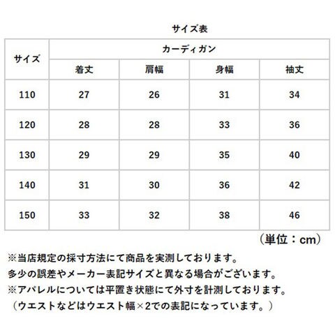 | サイズ | [ガールズ] ・110(105-115cm) ・120(115-125cm) ・130(125-135cm) ・140(135-145cm) ・150(145-155cm) ※サイズについて詳細は、商品画像の中にあるサイズ表をご覧くださいませ。 |