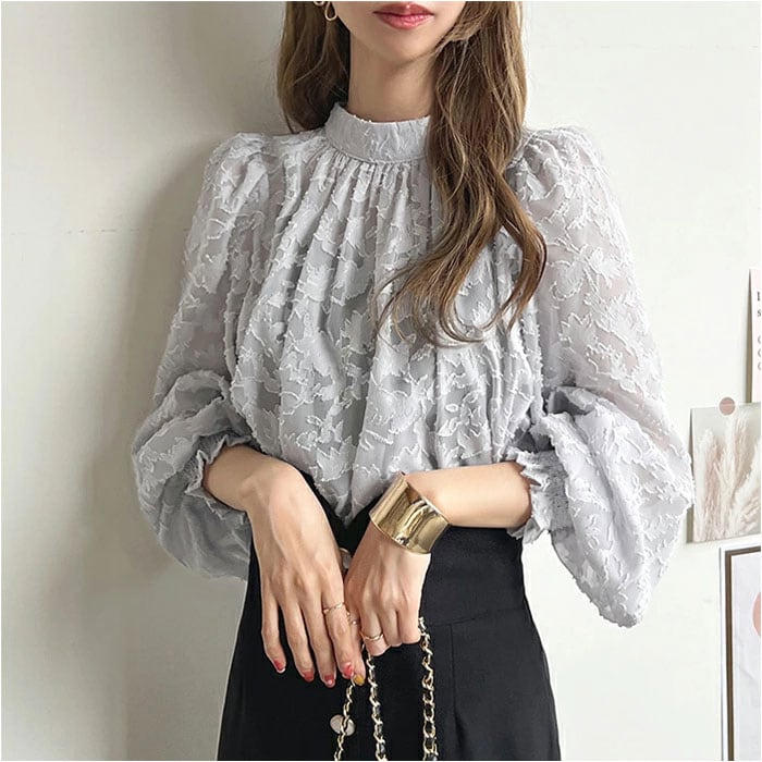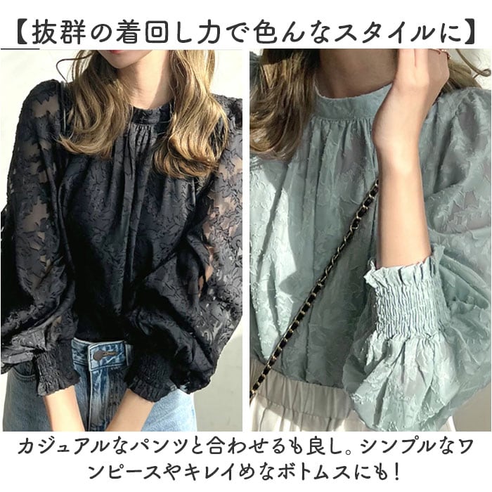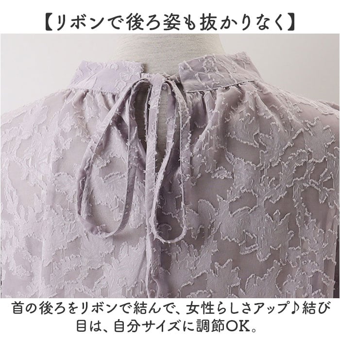 | 商品説明 | 【大人可愛いを詰め込んだデザイン】甘くなりすぎず、おしゃれにキマる!コーデの主役になれるフラワーリボンブラウス。【抜け感をプラス☆シアーブラウス】爽やかな透け感で、大人な着こなし♪ちょこっと上品な肌魅せが叶うアイテム。(※)透け感があるため、お手持ちのインナーを着用してください。【首まわりすっきり。スタンドカラー】首に沿った立ち襟。首周りをスマートに見せつつ、柔らかくい優しい印象を演出。【リボンで後ろ姿も抜かりなく】首の後ろをリボンで結んで、女性らしさアップ♪結び目は、自分サイズに調節OK。【ふんわり軽やかなバルーンスリーブ】膨らみを持たせたシルエットがキュート!気になる腕周りをカバー、袖口にはギャザーゴム入り。【シワになりにくく旅行などにも】模様が立体的に浮かび上がる、総柄カットジャガード。折りたたんでもシワが気になりにくい!【抜群の着回し力で色んなスタイルに】カジュアルなパンツと合わせるも良し。シンプルなワンピースやキレイめなボトムスにも! |