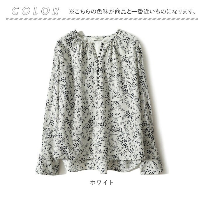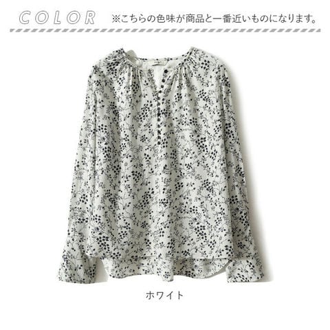 ブラウス 花柄 オシャレ【ホワイト】【Mサイズ】