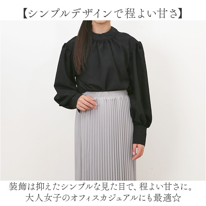 ブラウス 長袖 バルーン袖 【ブラック】