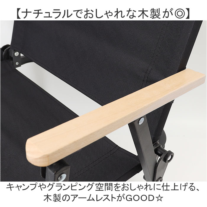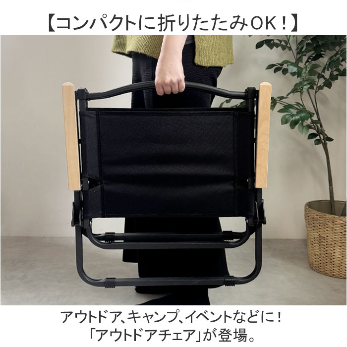 アウトドアチェア 折りたたみ 木目【ブラック】