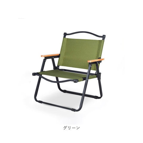 アウトドアチェア 折りたたみ 木目2点セット【グリーン】
