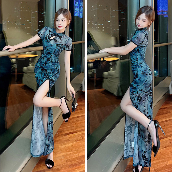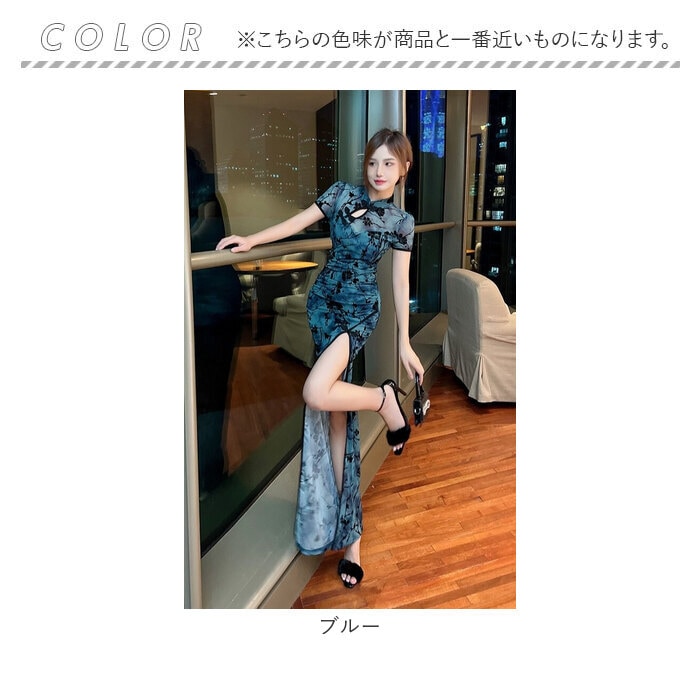 チャイナドレス パーティセクシー【ブルー】【Mサイズ】
