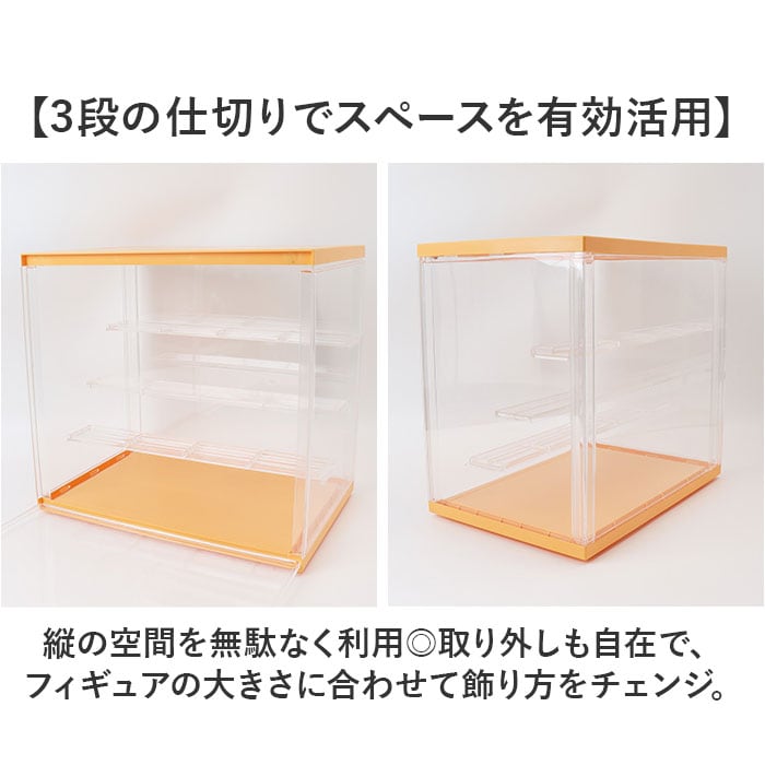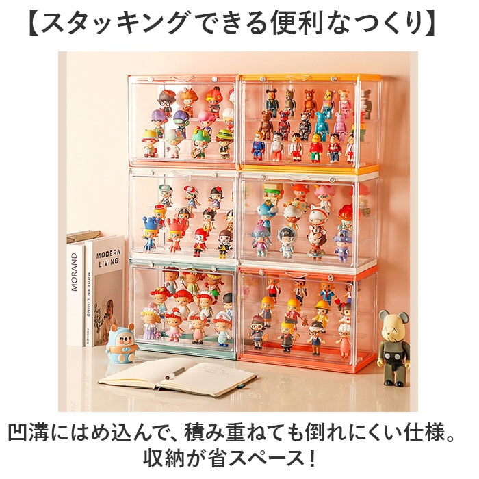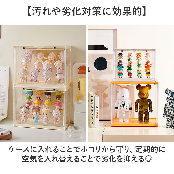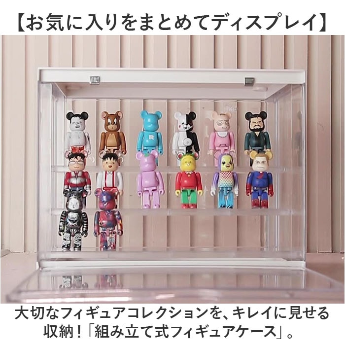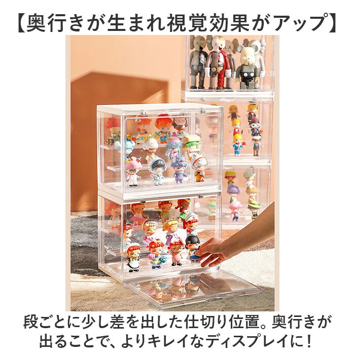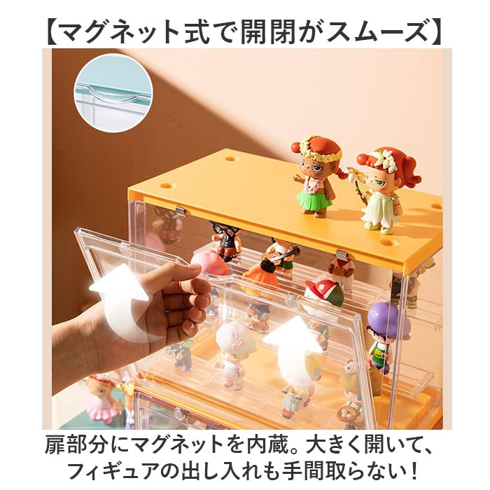| 商品説明 | 【お気に入りをまとめてディスプレイ】大切なフィギュアコレクションを、キレイに見せる収納!「組み立て式フィギュアケース」。【まるでお店のように飾れるケース】増えていくフィギュアやガチャガチャ等のミニチュアを、並べて保管できるクリアケース。【マグネット式で開閉がスムーズ】扉部分にマグネットを内蔵。大きく開いて、フィギュアの出し入れも手間取らない!【3段の仕切りでスペースを有効活用】縦の空間を無駄なく利用◎取り外しも自在で、フィギュアの大きさに合わせて飾り方をチェンジ。【奥行きが生まれ視覚効果がアップ】段ごとに少し差を出した仕切り位置。奥行きが出ることで、よりキレイなディスプレイに!【フィギュアの位置を固定できて安心】付属の固定シールを使い、各フィギュアを定位置に。少しの振動なら倒れずキープ。【汚れや劣化対策に効果的】ケースに入れることでホコリから守り、定期的に空気を入れ替えることで劣化を抑える◎【工具不要で組み立てカンタン】それぞれのパーツをはめて、固定していくだけ。ご自身でサッと組み立てOK。【スタッキングできる便利なつくり】凹溝にはめ込んで、積み重ねても倒れにくい仕様。収納が省スペース! |