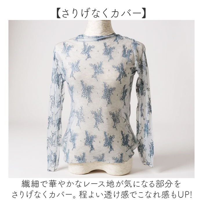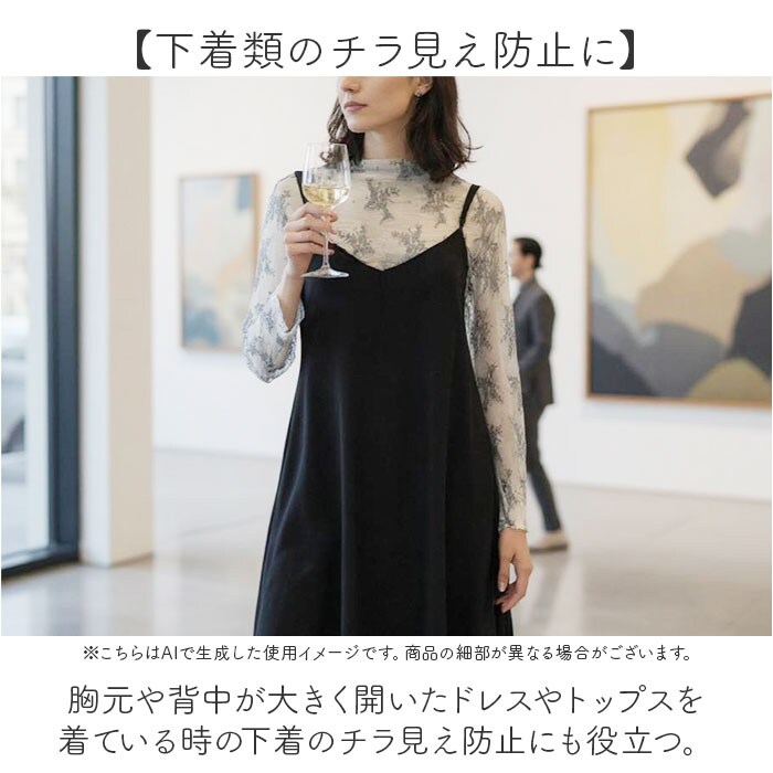 商品説明【オシャレに隠せるインナー】気になる部分をオシャレに隠せる♪シアー素材のファンデーションインナー。【さりげなくカバー】繊細で華やかなレース地が気になる部分をさりげなくカバー。程よい透け感でこなれ感もUP!【チクチクせず敏感肌の方にも】柔らかな生地を使用し、素肌に触れてもチクチクしない◎お肌が敏感な方でも使用可能◎【下着類のチラ見え防止に】胸元や背中が大きく開いたドレスやトップスを着ている時の下着のチラ見え防止にも役立つ。【薄手の生地感】着心地軽やかでストレスフリー。ボトムスにインしても着ぶくれ感なし♪【幅広いシーズン使える】キャミやブラトップはもちろん、ニットやセーターと合わせて春や秋コーデにも使える♪