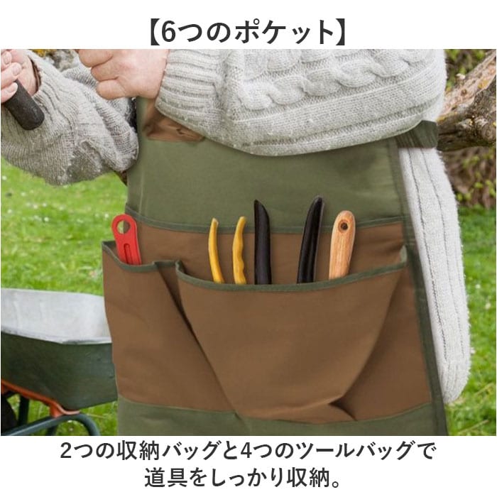 商品説明【作業効率UP!便利なエプロン】ガーデニングやDIYに最適なポケット付きエプロン【高品質素材】丈夫で耐久性のあるオックスフォード生地を使用。【首と腰のベルト調整可能】バックルスタイルで、自分のサイズに合わせて調整できる。【6つのポケット】2つの収納バッグと4つのツールバッグで道具をしっかり収納。【幅広いシーンで活躍】ガーデニングから果樹園での収穫、庭仕事まで、幅広いシーンで活躍するエプロン。