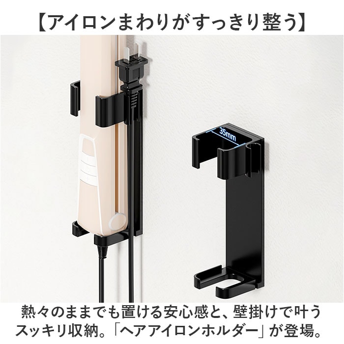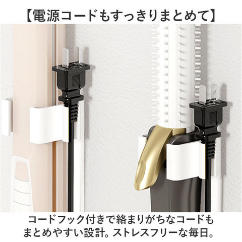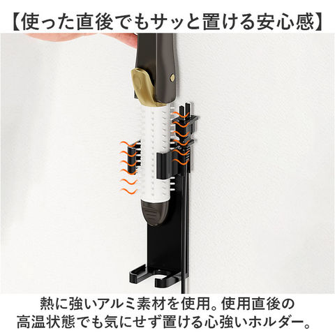 | 商品説明 | 【アイロンまわりがすっきり整う】熱々のままでも置ける安心感と、壁掛けで叶うスッキリ収納。「ヘアアイロンホルダー」が登場。【使った直後でもサッと置ける安心感】熱に強いアルミ素材を使用。使用直後の高温状態でも気にせず置ける心強いホルダー。【壁掛けで叶える、洗練収納】両面テープで取り付け簡単。穴あけ不要だから、賃貸でも安心して使える壁掛け収納。【電源コードもすっきりまとめて】コードフック付きで絡まりがちなコードもまとめやすい設計。ストレスフリーな毎日。【そのまま電源ONもOKな設計】底部にコンセント通し口を確保。ホルダーに入れたまま電源が入れられる便利な構造。【火傷や事故の防止にも一役】誤って触れることのない設計で、小さなお子さまやペットがいるご家庭にも嬉しい安心感。【インテリアに馴染むデザイン】シンプルですっきりとした形状が魅力。空間に溶け込む洗練された佇まい。 |