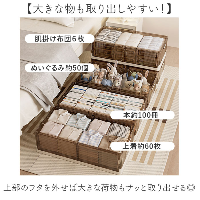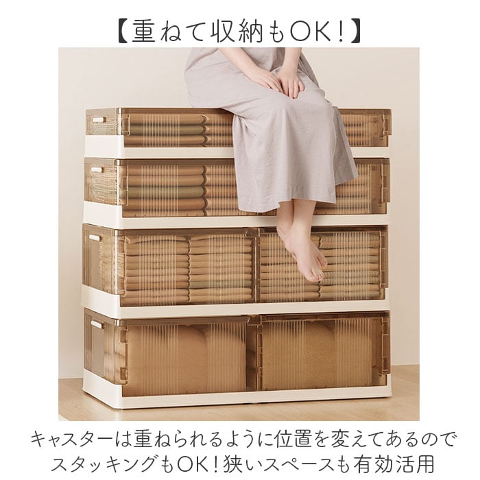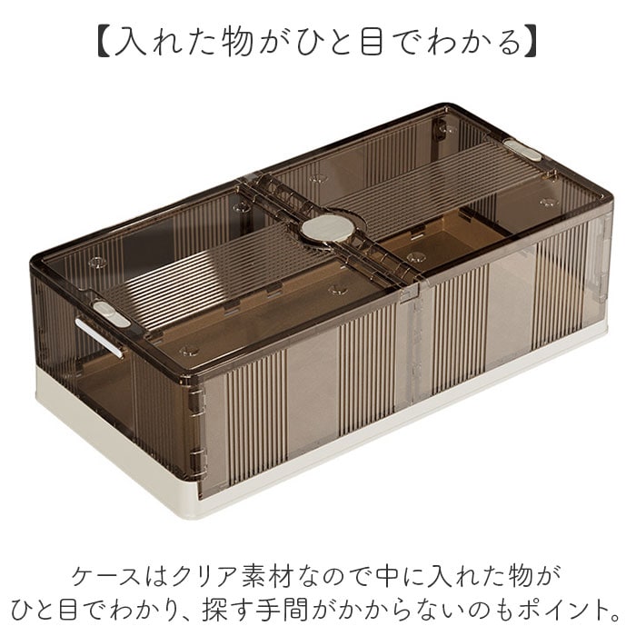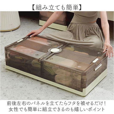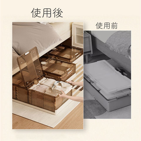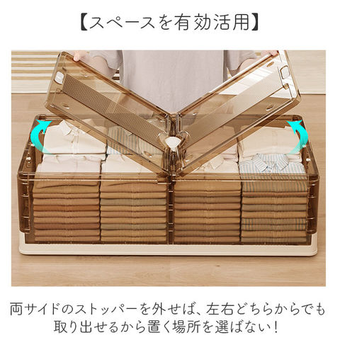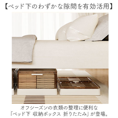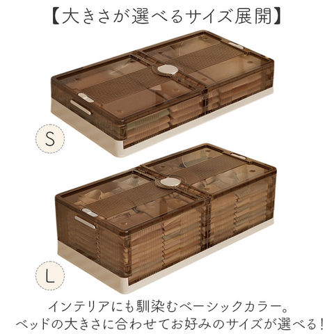 | 商品説明 | 【ベッド下のわずかな隙間を有効活用】オフシーズンの衣類の整理に便利な「ベッド下 収納ボックス 折りたたみ」が登場。【スペースを有効活用】両サイドのストッパーを外せば、左右どちらからでも取り出せるから置く場所を選ばない!【入れた物がひと目でわかる】ケースはクリア素材なので中に入れた物がひと目でわかり、探す手間がかからないのもポイント。【大きな物も取り出しやすい!】上部のフタを外せば大きな荷物もサッと取り出せる◎防虫剤や除湿剤が入れられるカップが付属。【収納物の出し入れもラクラク】底面にはキャスター付き。ボックスを引き出す時も床を傷つけにくい!持手付きで出し入れ楽々♪【重ねて収納もOK!】キャスターは重ねられるように位置を変えてあるのでスタッキングもOK!狭いスペースも有効活用【コンパクトに折りたたみ】使わない時はコンパクトに折りたため、持ち運びしやすく、収納スペースにも困らない。【組み立ても簡単】前後左右のパネルを立てたらフタを被せるだけ!女性でも簡単に組立できるのも嬉しいポイント【大きさが選べるサイズ展開】インテリアにも馴染むベーシックカラー。ベッドの大きさに合わせてお好みのサイズが選べる! |