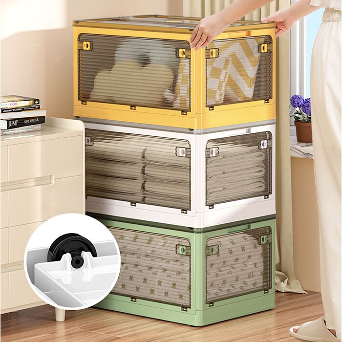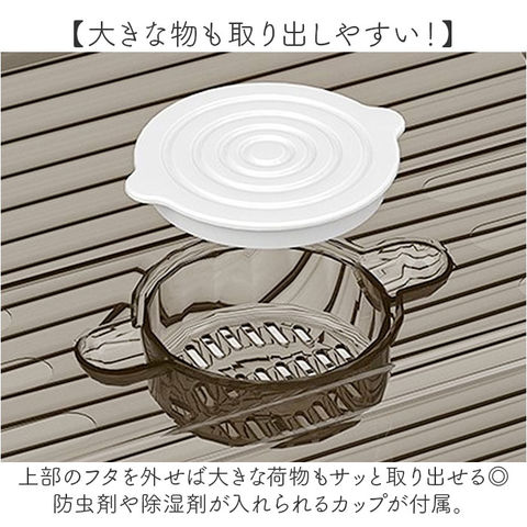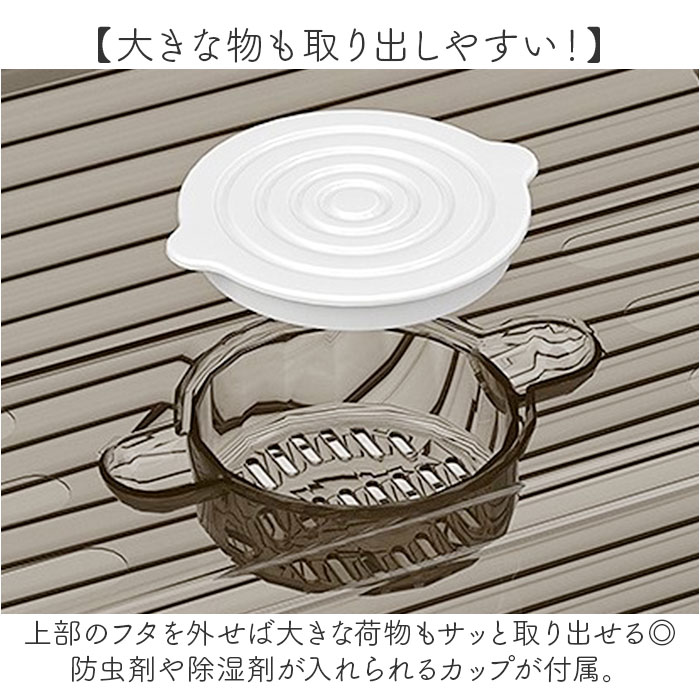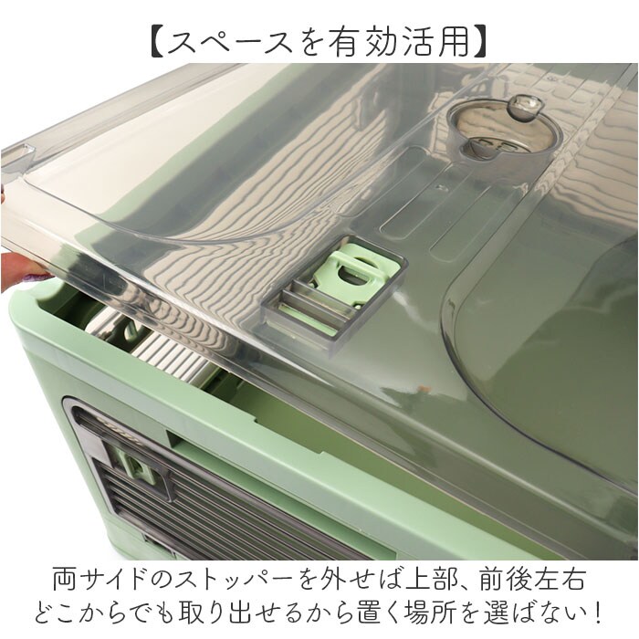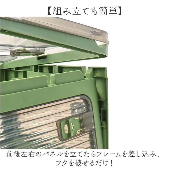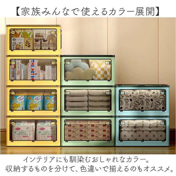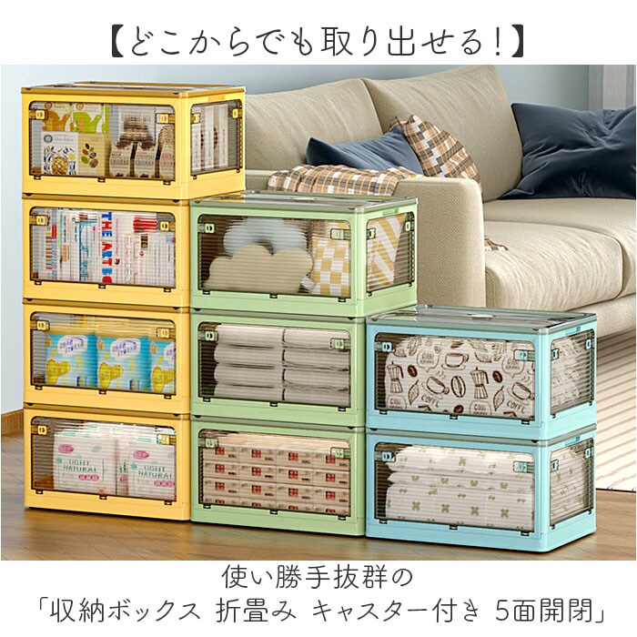 | 商品説明 | 【どこからでも取り出せる!】使い勝手抜群の「収納ボックス 折畳み キャスター付き 5面開閉」【スペースを有効活用】両サイドのストッパーを外せば上部、前後左右どこからでも取り出せるから置く場所を選ばない!【入れた物がひと目でわかる】扉部分はクリア素材なので中に入れた物がひと目でわかり、探す手間がかからないのもポイント。【大きな物も取り出しやすい!】上部のフタを外せば大きな荷物もサッと取り出せる◎防虫剤や除湿剤が入れられるカップが付属。【掃除も移動もラクラク】底面にはキャスター付き。軽量素材を使用しているので、掃除やお部屋の移動の際も動かしやすい【重ねて収納もOK!】フタ部分にはキャスターが収まる溝付きでスタッキングもOK!狭いスペースも有効活用。【コンパクトに折りたたみ】使わない時はコンパクトに折りたため、持ち運びしやすく、収納スペースにも困らない◎【組み立ても簡単】前後左右のパネルを立てたらフレームを差し込み、フタを被せるだけ!【家族みんなで使えるカラー展開】インテリアにも馴染むおしゃれなカラー。収納するものを分けて、色違いで揃えるのもオススメ。 |