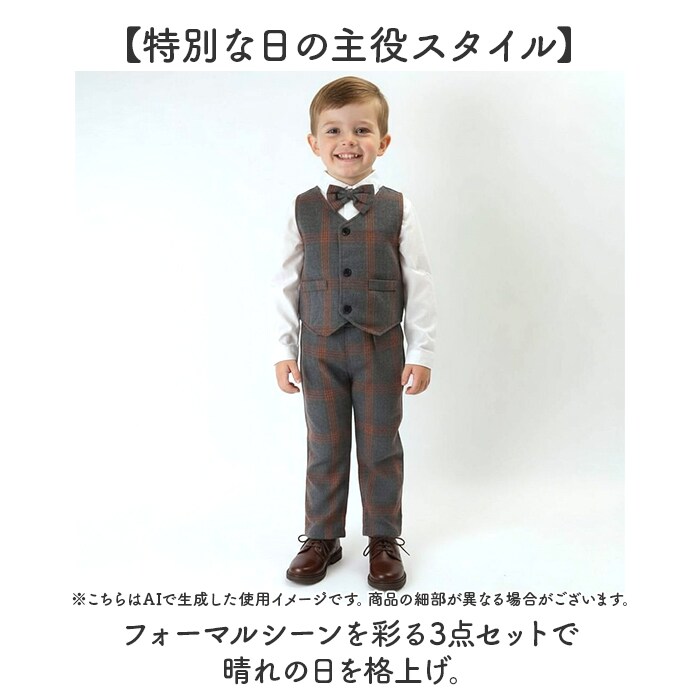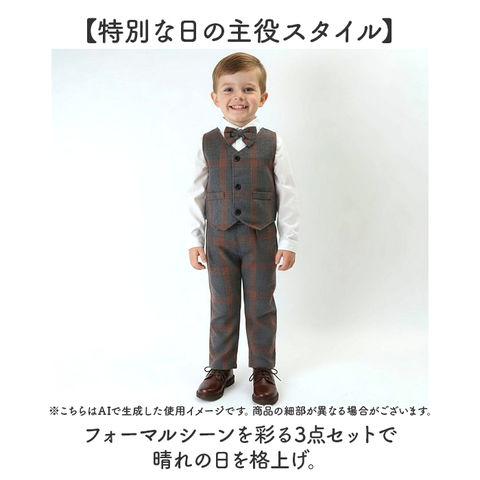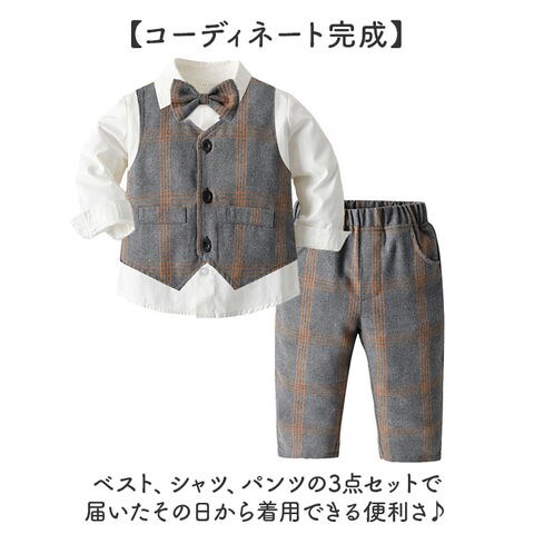 | 商品説明 | 【特別な日の主役スタイル】フォーマルシーンを彩る3点セットで晴れの日を格上げ。【コーディネート完成】ベスト、シャツ、パンツの3点セットで届いたその日から着用できる便利さ♪【フォーマルシーン対応】結婚式や発表会などの特別な日に相応しいデザインで主役級の存在感◎【やさしい着心地】柔らかな生地を採用し、元気に動き回る男の子も快適に過ごせる。【キュートな蝶ネクタイ】愛らしさを引き立てる蝶ネクタイ付きで、写真映えも抜群のスタイリング!【丁寧な仕立て】しっかりとした裁縫で型崩れしにくく、繰り返しの着用にも安心の品質〇 |