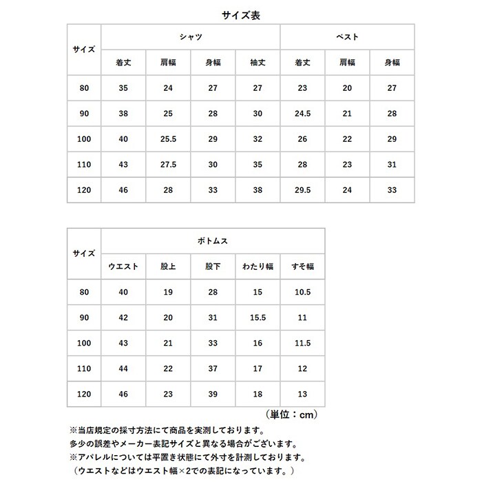 | サイズ | [キッズ] ・80cm ・90cm ・100cm ・110cm ・120cm ※サイズについて詳細は、商品画像の中にあるサイズ表をご覧くださいませ。 |