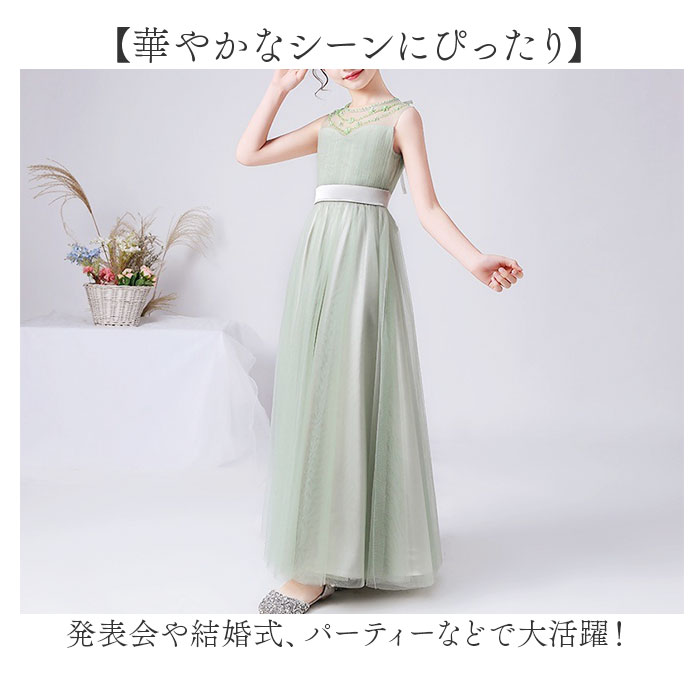 商品説明【エレガントなキッズドレス】輝くビジューをあしらった洗練された子供用ドレスが登場。【華やかなシーンにぴったり】発表会や結婚式、パーティーなどで大活躍!【美しいシルエットデザイン】光沢生地に2枚重ねのチュールで女の子らしい上品な印象を演出◎【ウエストはリボンでアクセント】ウエストに合わせて結べるのでサイズ調整が可能。スタイルアップ効果も〇【首元にきらめくビジュー】ビジューストーンが胸元を華やかに彩る洗練された大人っぽい仕上がり。