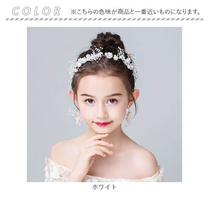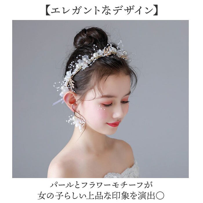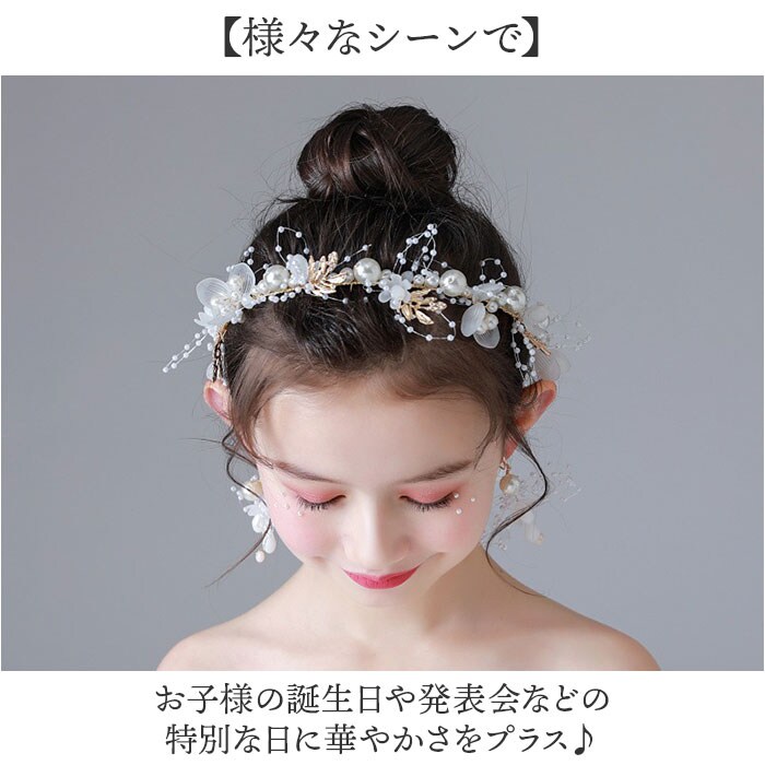 | 商品説明 | 【ドレスアップのポイントに】お顔まわりが華やかになるキッズヘアアクセサリーが登場。【髪飾り&イヤリングの2点セット】髪飾りとお揃いデザインのイヤリングで統一感UP♪【お好みの位置に】両端のリングにヘアピンやリボンでお好みの場所に簡単装着◎※ヘアピンは付属しておりません。【エレガントなデザイン】パールとフラワーモチーフが女の子らしい上品な印象を演出〇【様々なシーンで】お子様の誕生日や発表会などの特別な日に華やかさをプラス♪ |