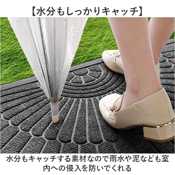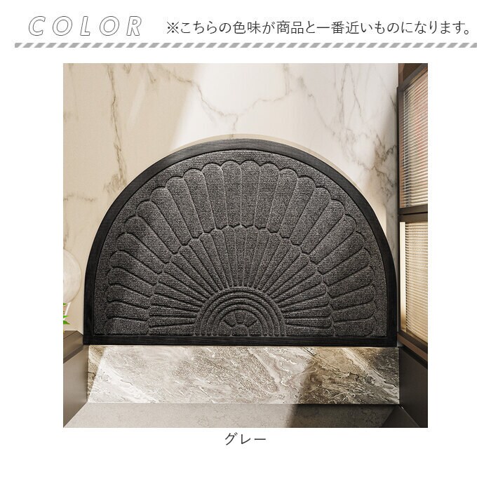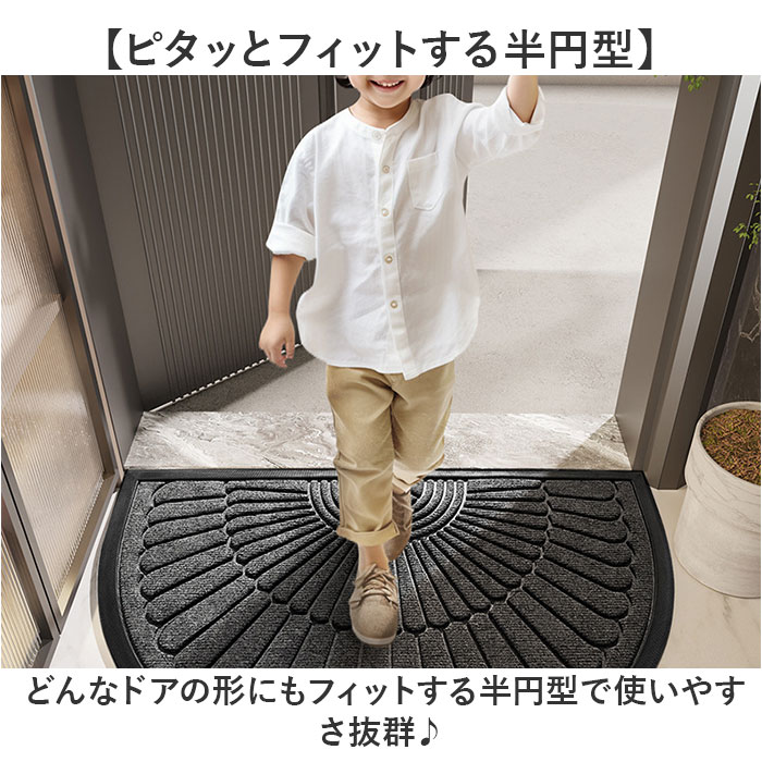 | 商品説明 | 【汚れや水分をキャッチ】屋内に泥や水分が入るのを大幅に軽減!横幅80cmの半円型の玄関マットが新発売。【靴裏の泥をすっきり落とす】表地は硬めの生地を使用し、靴裏をマットに擦れば泥や土が簡単に落ちる♪【水分もしっかりキャッチ】水分もキャッチする素材なので雨水や泥なども室内への侵入を防いでくれる【硬めの生地でへたりにくい】凹凸がキープできる硬さでへたりにくく、人の出入りが多い会社やお店用にも最適☆【ピタッとフィットする半円型】どんなドアの形にもフィットする半円型で使いやすさ抜群♪【ズレにくいラバー付き】裏面は滑り止め加工を施したラバー素材。雨の日のタイルでもすべりにくく安心。【お手入れもらくちん】汚れが気になったら丸洗いOK!払うだけでも汚れが落ちやすい素材。【玄関のインテリアにも】お花のように模られたデザインで、インテリアとしても映えるアイテム! |