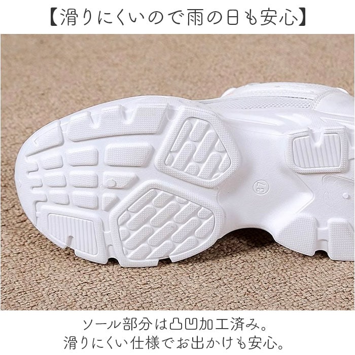 | 商品説明 | 【トレンド感のあるスタイルを演出】足元をおしゃれに盛れて、履きやすさも抜群♪厚底スニーカーが登場。【スラっと美脚魅せを叶える!】5cmソール+3cmインソール内蔵で、履くだけでスタイルアップ◎【ボリューム感が今っぽい☆】スポーティなルックスでパンツはもちろん、スカートに合わせてもかわいいアイテム。【脱ぎ履きがラクチン】前後にタブを採用し、脱ぎ履きのしやすさに配慮。お出かけ先でもスムーズで快適に。【滑りにくいので雨の日も安心】ソール部分は凸凹加工済み。滑りにくい仕様でお出かけも安心。【取り外せるインソールで清潔】取り外し可能だから、いつでも洗えて衛生的に使える快適仕様〇 |
