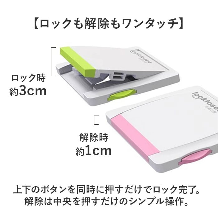 | サイズ | [縦]約8cm/[横]約8.5cm/[厚さ]約1cm(解除時) 約3cm(ロック時) ※サイズは当店計測の実寸サイズです。実際の商品ならびにメーカー表記サイズとは多少の誤差が生じる場合がございます。あらかじめご了承ください。 |