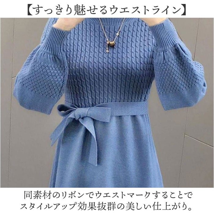 | 商品説明 | 【大人のおしゃれが1枚で】上品なAラインシルエットで洗練された印象に。【一枚で決まる上品スタイル】シンプルなデザインと美しいシルエットがこなれ感を演出し大人のコーデが完成!【すっきり魅せるウエストライン】同素材のリボンでウエストマークすることでスタイルアップ効果抜群の美しい仕上がり。【ストレスフリーな着心地】チクチクしにくい柔らかなニット素材が肌に心地よく長時間の着用でも快適な着心地。【表情をもたらす編み目】胸元・袖・スカートを異なる編み目にすることでシンプルながらも奥行きあるデザインに☆【様々なシーンで活躍】普段使いはもちろんオフィスやセミフォーマルにも対応☆ |